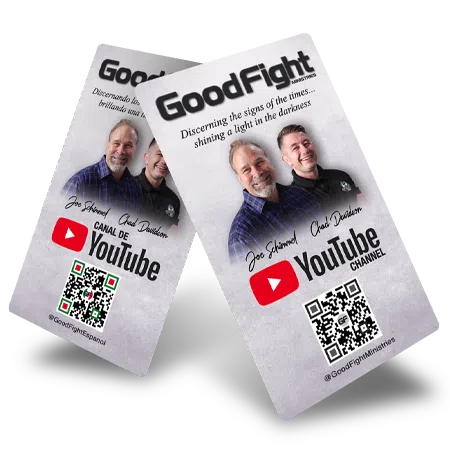 Introducing a great and easy way to share our popular Good Fight Ministries YouTube channel with others using a business card size handout! With the growing popularity of our YouTube channel each month, this is where most of our ministry takes place, through our popular shows like The Good Fight Radio Show and 5:11 News. Not to mention all of our other special video exposés that we release throughout the year!